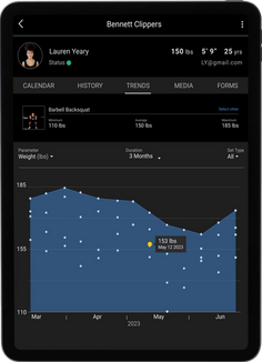 With our comprehensive update, Coaches can view the current workout schedule and exercise history, with clear trend visualizations. This refined interface integrates summaries with session details, allowing coaches to compare current performance against past benchmarks and identify trends quickly.